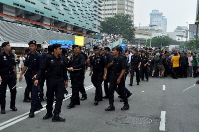 Polis ni semua muka budak-budak hingusan yang baru lepas dari kandang..Depa ni wat keja lebih sangat..Sekoq-sekoq muka jambu tapi buat-buat garang..Dah tangkap tu tangkap saja la,yang kaki gatai pi tendang perut budak-budak demo pasai apa?Yang aku pelik tu kat baju depa tadak pulak no anggota,,Nampak sangat pengecutnya...Bacul!